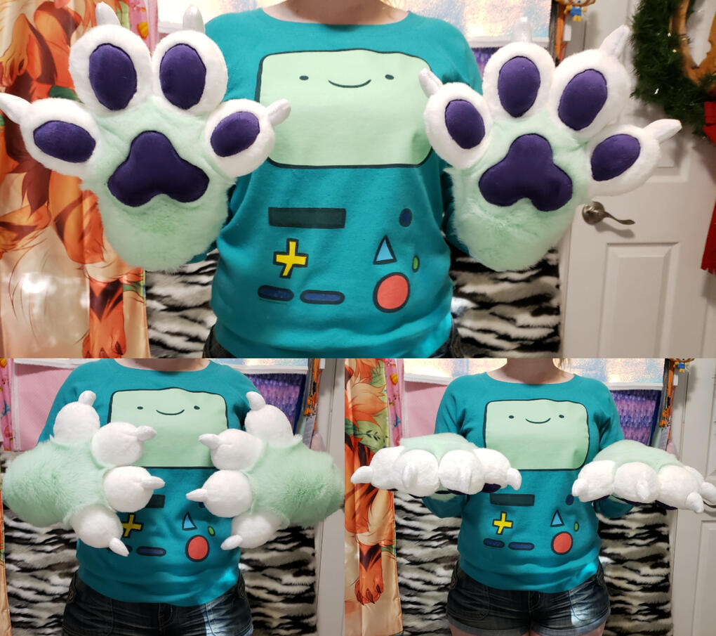 One fur color, claws, lined inside. Can be my personal pattern(top) or Kloofsuits(bottom).