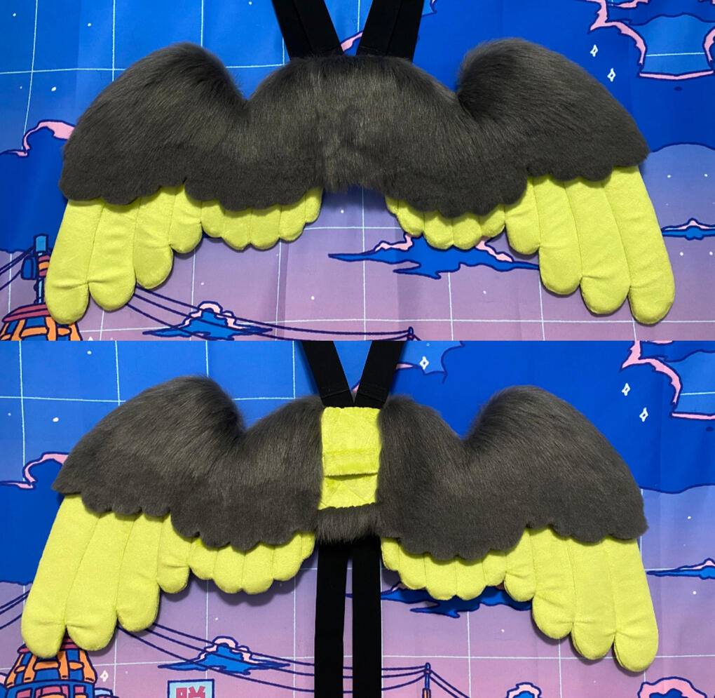 Wings start at $330One fur & minky color. Has center strap for hanging. Adjustable elastic strap for wear.